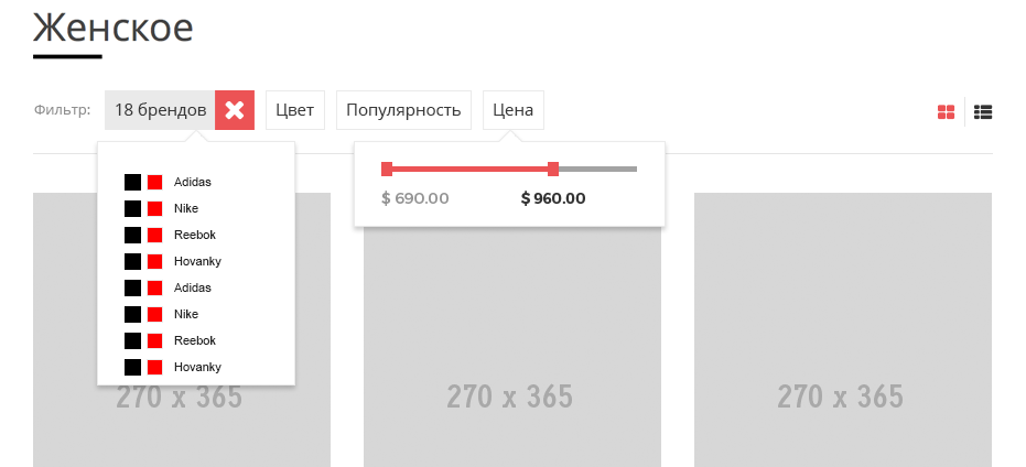 Например, первый анализ поведения пользователей интернет-магазина одежды Trendon показал, что посетители не пользуются фильтром в каталоге, в результате было принято изменить внешний вид и механику, как показано на примере ниже.