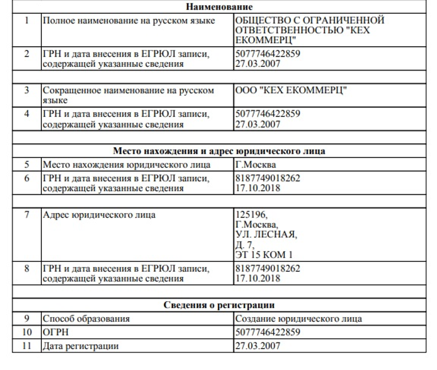 Фрагмент выписки из ЕГРЮЛ.