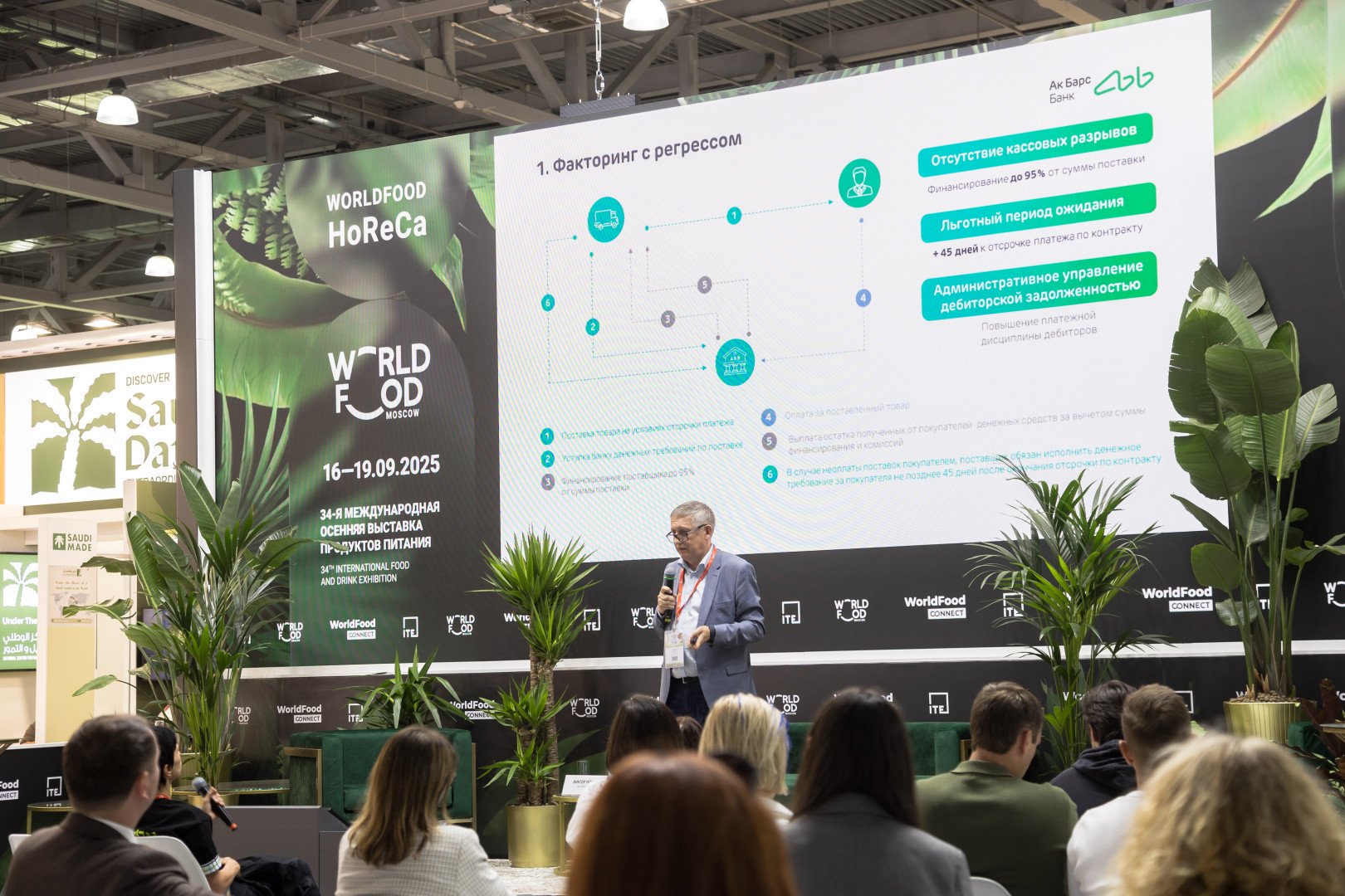Факторинг – далеко не новый финансовый инструмент, но в периоды нестабильной экономической ситуации и высокой ключевой ставки внимание к нему возрастает. Поставщики обращаются к факторингу за быстрым получением оборотных средств, ритейлеры – за обеспечением длинных отсрочек платежа. Эксперт дирекции цифрового факторинга «Ак Барс Банка», выступая на WorldFood Moscow 2025, рассказал о продуктах факторинга в портфеле банка, а также раскрыл механизмы применения этого инструмента для оптимизации финансовых потоков и решения задач операционной деятельности.