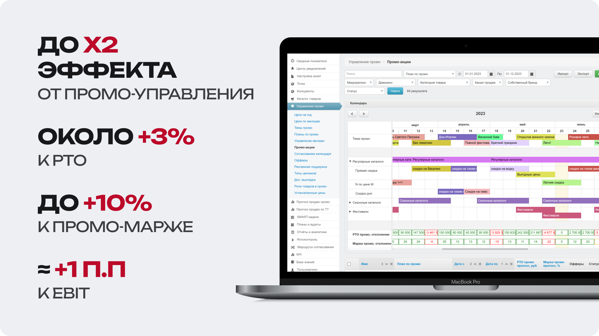 В результате компания добилась конкретных измеримых результатов. На таком масштабе главное преимущество – скорость и качество коммерческих решений. Автоматизация позволила сократить время планирования акции «под ключ» до двух часов. Это дает возможность принимать управленческие решения на основе самых оперативных данных, а значит – делать это максимально эффективно.