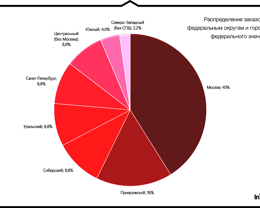 | Распределение заказов по федеральным округам и городам федерального значения |