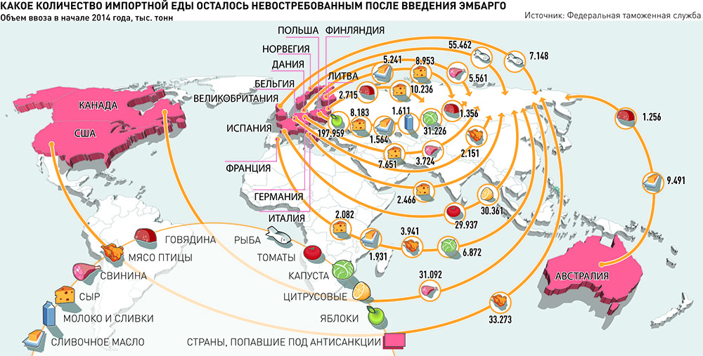 «Что касается сокращения поставок продовольственной продукции, поставщики довольно быстро переориентировали свои каналы, – рассуждает о последствиях введения продовольственного эмбарго президент Федерации рестораторов и отельеров Игорь Бухаров. – К нам (в рестораны. – «РГ») теперь поставляют продукцию из ряда стран Ближнего Востока, Севера и Юга Африки, Южной Америки. Нельзя сказать, что в этой части все плохо. Хотя часть предпринимателей, действительно, ушла с рынка. На ее место заступили другие».
