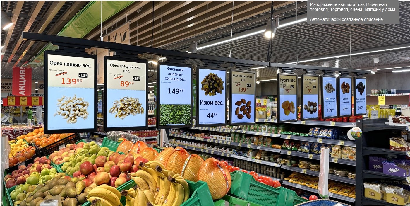 «Сейчас наша сеть насчитывает более 3700 магазинов, мы работаем в формате у дома. К внедрению новых технологий мы всегда относились взвешенно: сейчас во многих магазинах появляется много диджитал-поверхностей, но в наш CAPEX большие экраны никогда не входили. Мы запустили рекламу на кассах самообслуживания и довольствовались этим. Однако наши технологические партнеры предложили протестировать новое оборудование – прайс-дисплеи. Мы произвели расчеты, и цена на них не была пугающей.