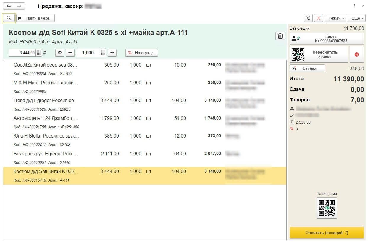 Команда сделала привязку продавцов к каждой строке заказа через сканирование их штрихкодов. Такая доработка избавила персонал от необходимости вручную вводить данные о сотруднике и ускорила процесс оформления чеков. Интерфейс РМК также дополнили: к стандартной информации добавлены важные показатели из карты постоянного покупателя.