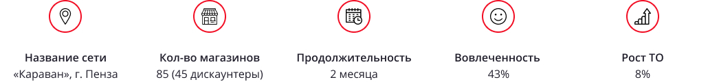 В итоге первая программа лояльности прошла на пять с плюсом. Если обратиться к общедоступной статистике федеральных сетей, прирост товарооборота на 3% считается очень хорошим результатом для подобных программ. У «Каравана» этот показатель достиг 8%! Вовлеченность в акцию составила 43%, что стало историческим событием для пензенской сети. Итоги акции превзошли все ожидания.