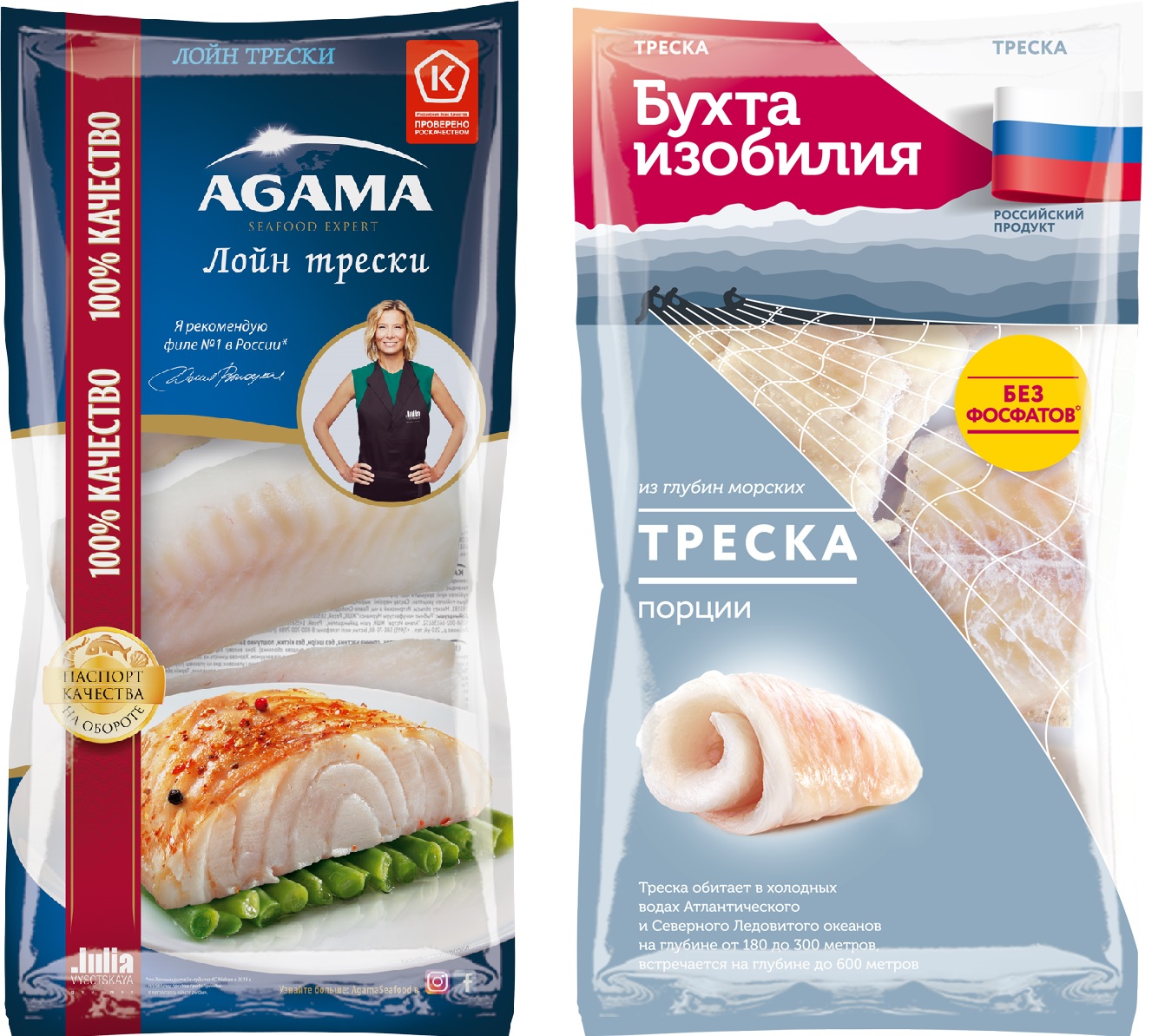 — Филе трески «Бухта изобилия» и лойн (спинка) трески «Agama», оба этих продукта удостоены российского Знака качества во второй раз.