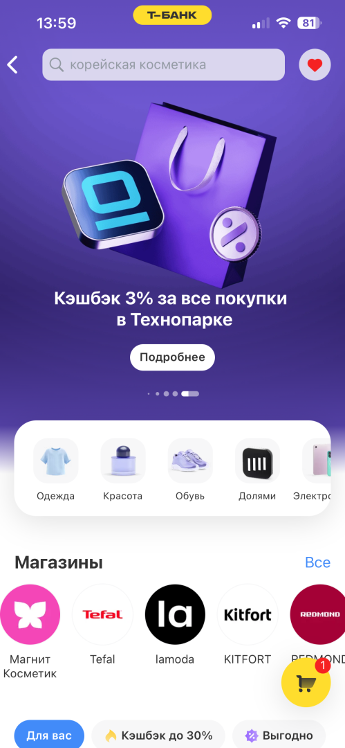После успеха направлений «Топливо», «Авиа», «Путешествия», «Афиша» и «Супермаркеты» Т-Банк решил продолжить развитие товарной вертикали и запустил партнерскую витрину « Шопинг», ставшую частью экосистемы продуктов.