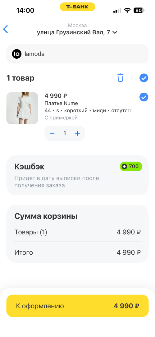 Кроме возможности нативно покупать прямо в приложении интеграция позволяет, во-первых, получать кешбэк от партнера; во-вторых, начислять баллы программы лояльности от партнера, если она у него есть и партнер захотел делать начисления; а в-третьих, оплачивать всеми инструментами банка. Покупатель может оплатить картой или, если у него сейчас не хватает денег, воспользоваться рассрочкой. У ряда партнеров, которые еще находятся на этапе интеграции чекаута, пока покупки проходят по кликаут-модели с переходом на сайт партнера, но до конца года большая часть из них перейдет на оплату в приложении Т-Банка.