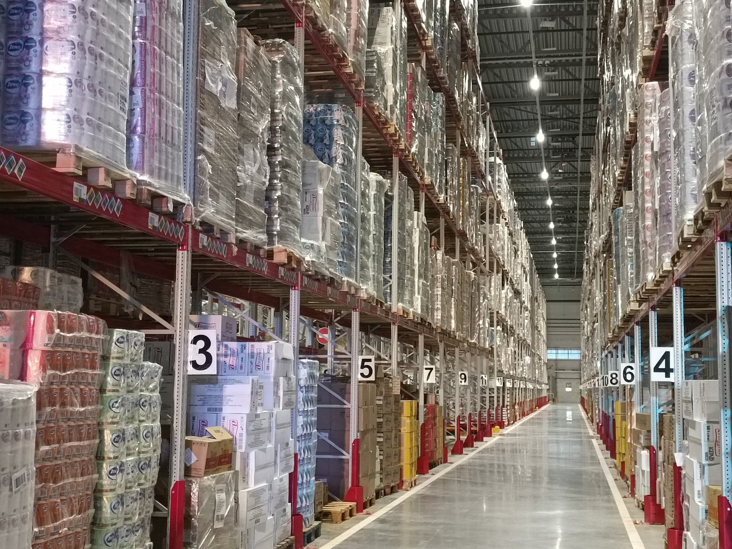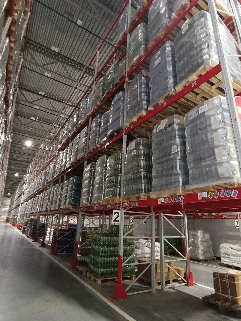 Склад сквозной: с одной стороны поступает товар от поставщиков, с другой – уходят укомплектованные для отгрузки в магазины автомобили. В зоне экспедиции и приемки насчитывается в общей сложности 74 доковых ворот. Бесперебойную работу РЦ обеспечивают порядка 400 сотрудников и 45 единиц техники.