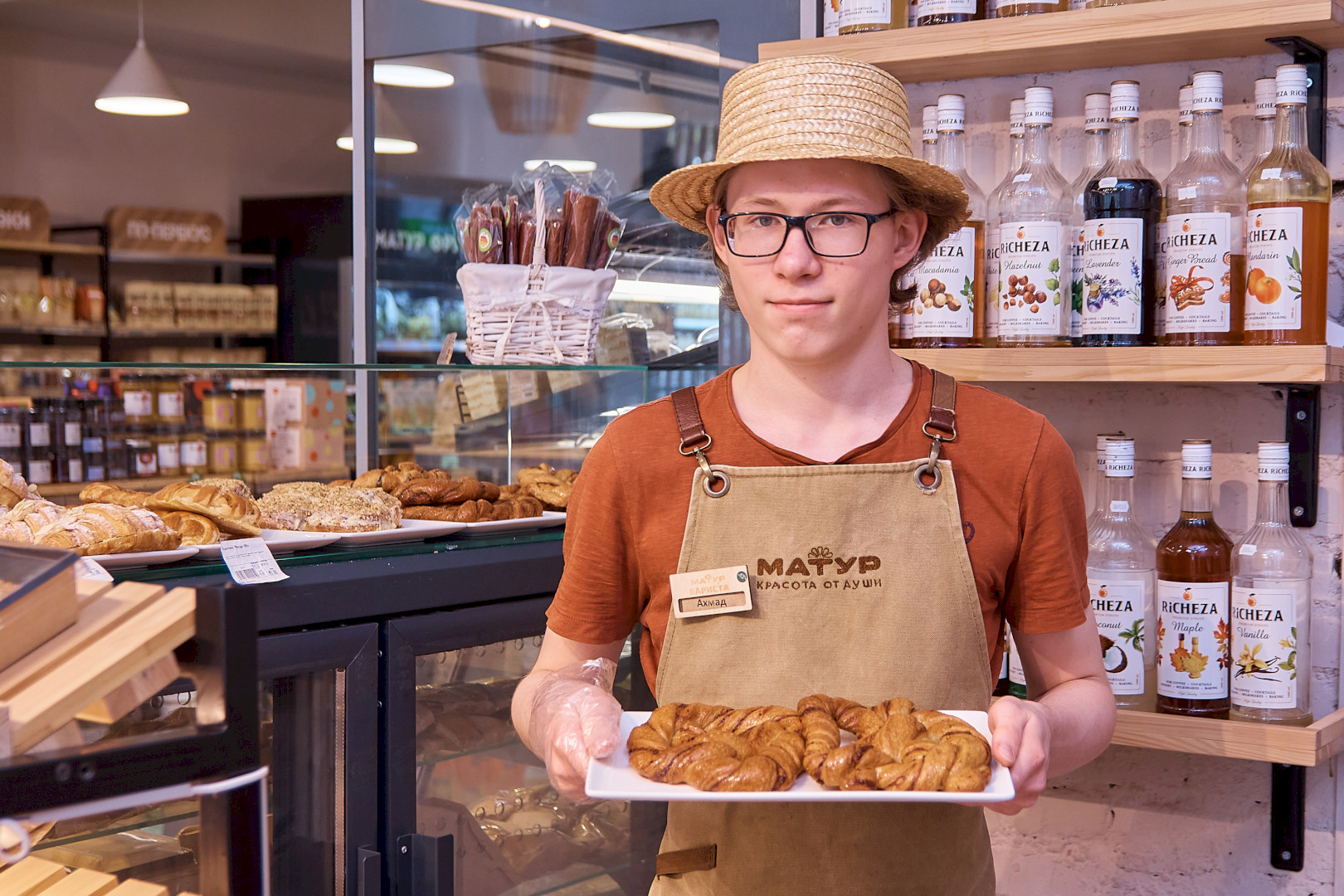 «Мы производим чак-чак, которым очень гордимся, – говорит Мария Ершова. – Его фишка в том, что мед не кристаллизуется, а обволакивает продукт. Также у нас есть молочный шоколад с чак-чаком, это наш специалитет. Вообще, товары собственного производства сейчас составляют 70% продаж. К нам идут за выпечкой, за блюдами ready-to-eat. Эту категорию мы запустили не так давно, но она уже набирает популярность. Готовую еду мы привозим с фабрики-кухни Стерлитамака, там у нас большой цех, где работают около 200 сотрудников. А наш ремесленный хлеб готовится по рецепту бабушки основателей сети, который воссоздали наши пекари. Так что это тоже наш, местный рецепт. И мы выпекаем хлеб до пяти раз в день. Даже можем сделать это по просьбе гостя: ему нужно всего лишь попросить и подождать пять – семь минут».