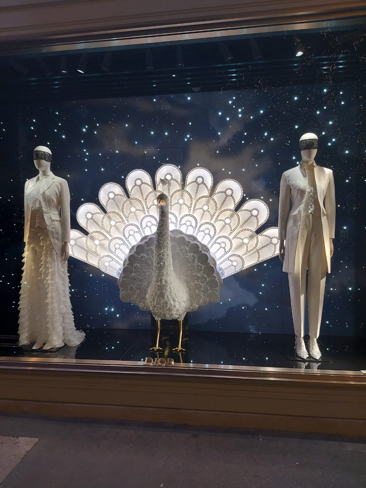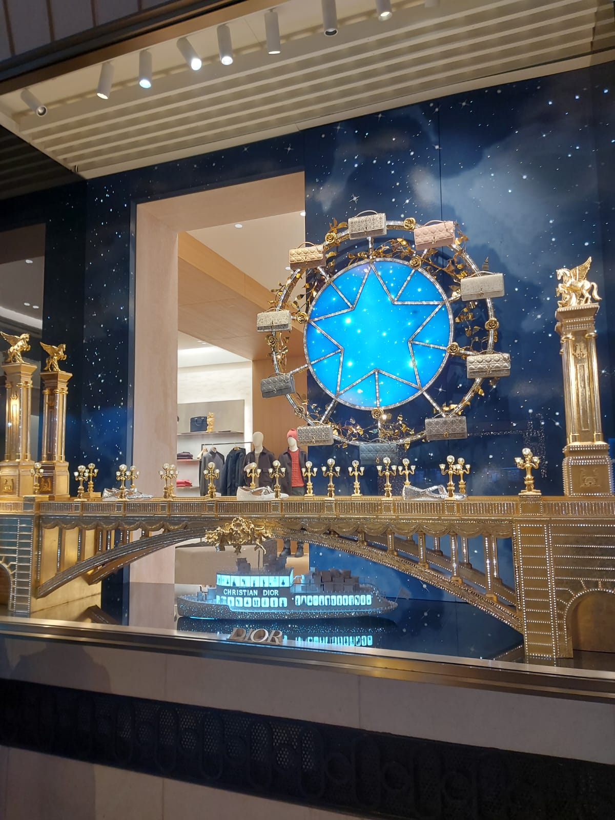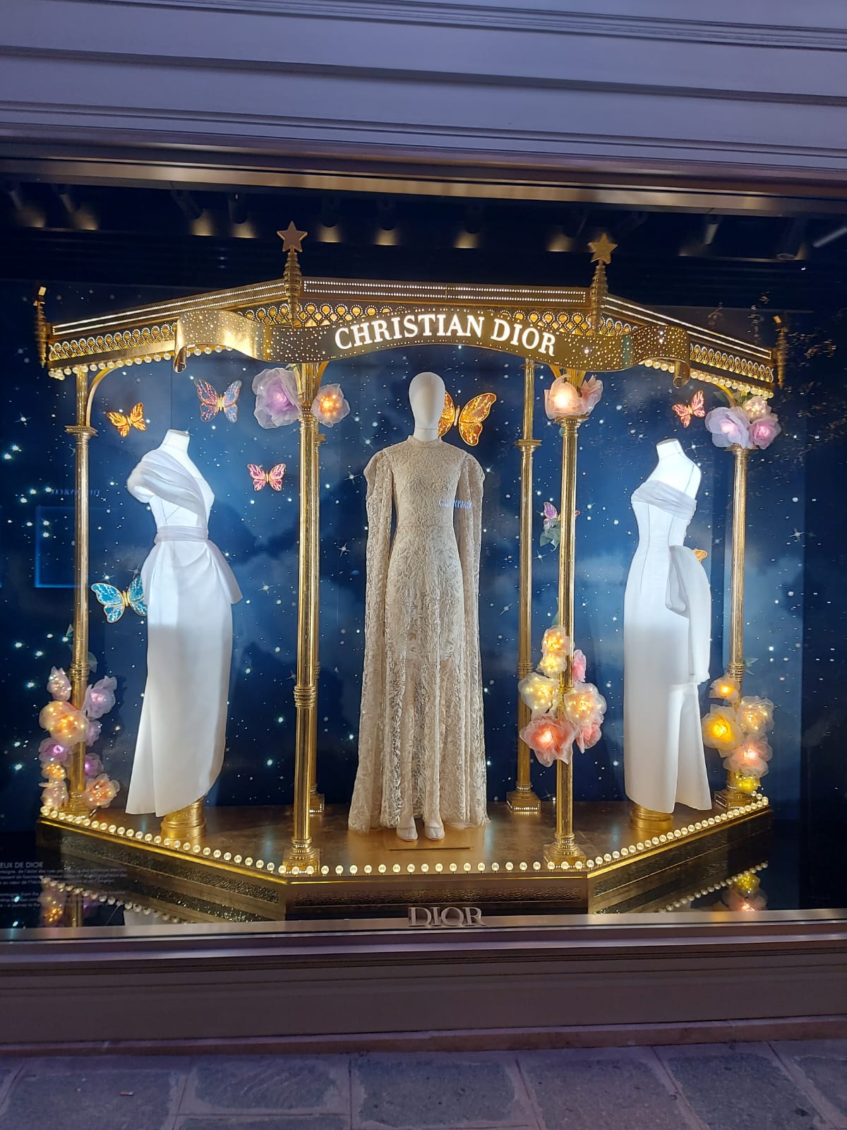 В Париже Dior рассказывает завораживающую круизную историю, делая отсылки к интерьерам лайнеров XX века. Инсталляции бренда стали гимном неугасимой жизненной силе, красоте, побеждающей холод. Дизайнеры витрин хотели показать силу противоречий: холода зимы и тепла праздника, традиции (роза как вечный символ дома) и инноваций (новые материалы и технологии).