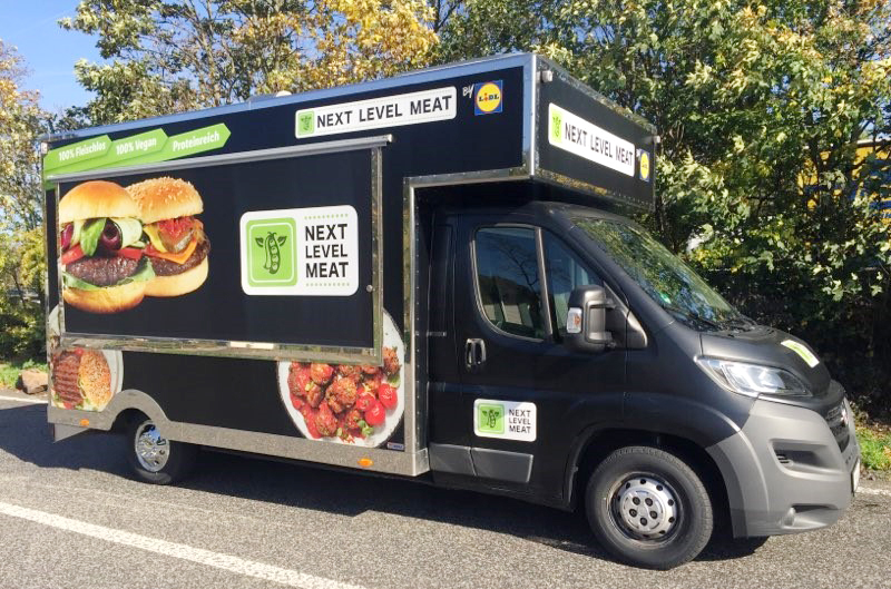 В Германии Lidl популяризирует веганские альтернативы мяса, поэтому в разных городах страны фургоны представляют блюда торговой марки Lidl Next Level Meat.