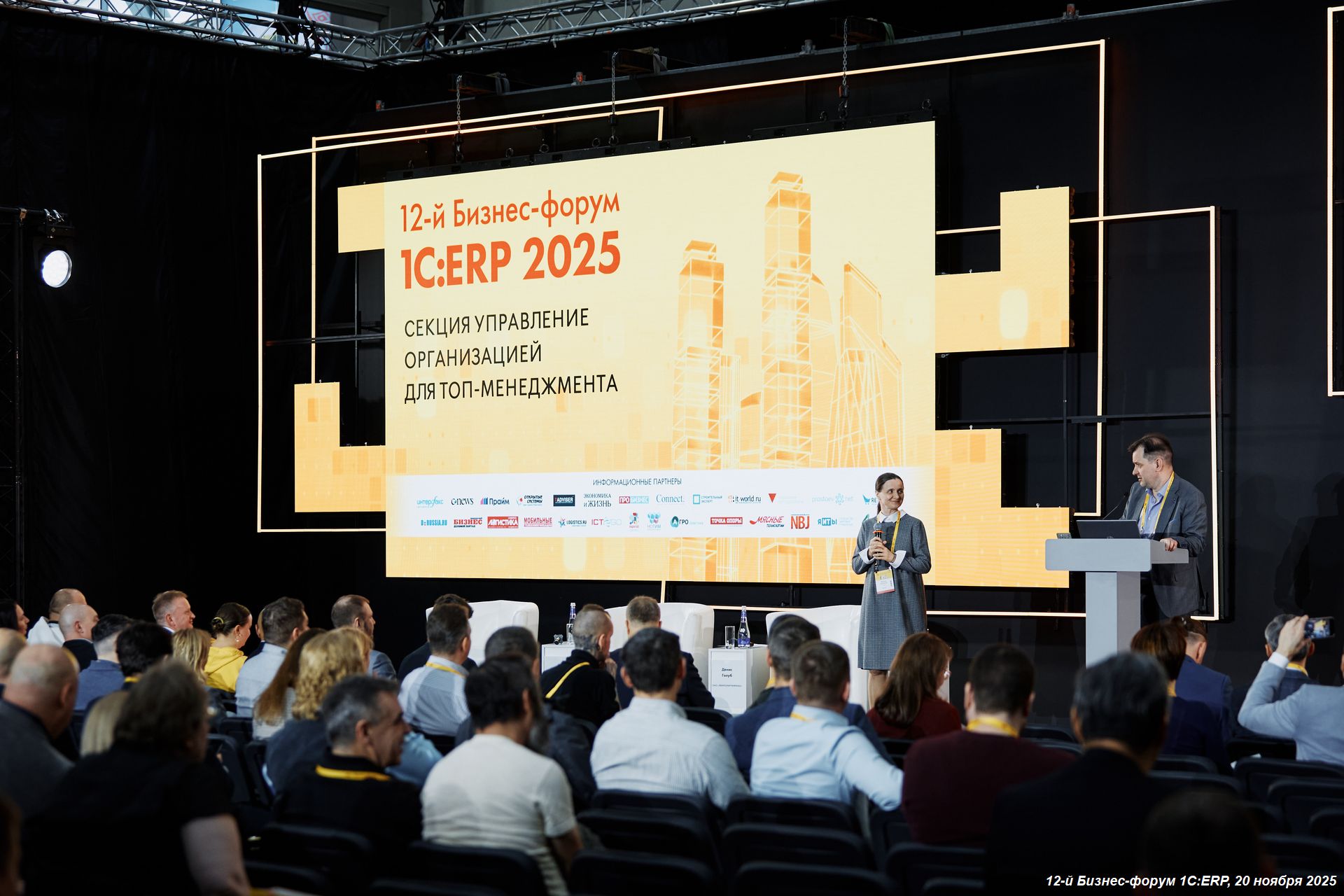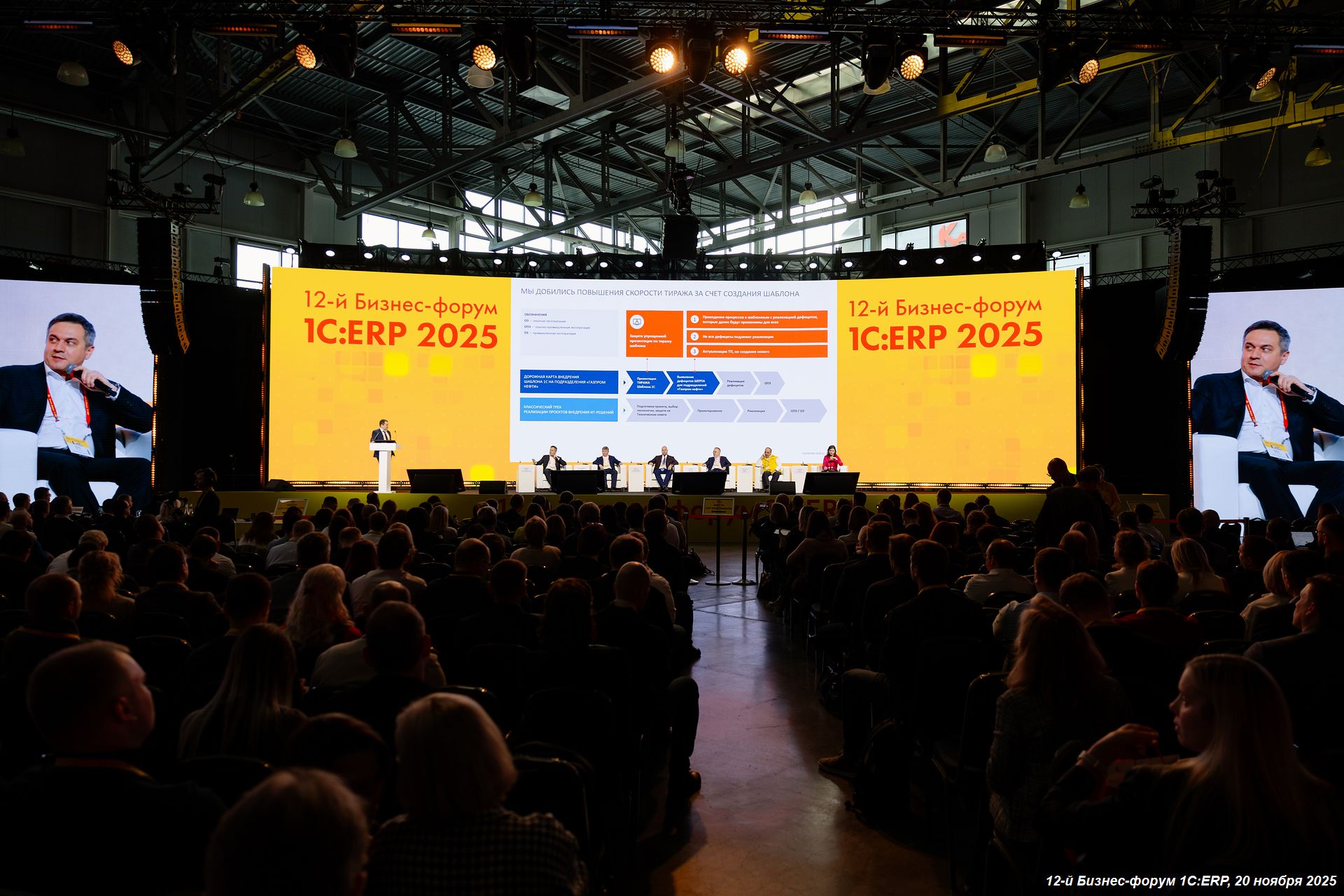 20 ноября 2025 года фирма "1С" провела 12-й Бизнес-форум 1С:ERP, посвященный внедрениям и развитию решений и сервисов "1С" для корпоративного рынка, предприятий крупного и среднего масштаба. Форум прошел в очном формате с онлайн-трансляцией всех секций, очно в нем приняли участие более 3700 человек из 1700 организаций и 3350 слушателей подключились к прямой трансляции.
