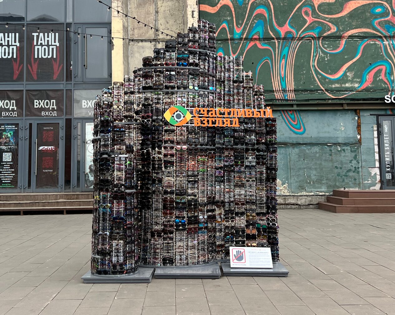 Художественная инсталляция «Вторая жизнь» открылась в общественном пространстве «Севкабель Порт» — это совместный проект сети «Счастливый взгляд» и петербургского художника Алексея Юсупова. Конструкция высотой более трех метров и шириной около двух метров весит больше 300 кг и состоит из пяти тысяч старых очков, которые клиенты компании приносили в оптики в течение года.