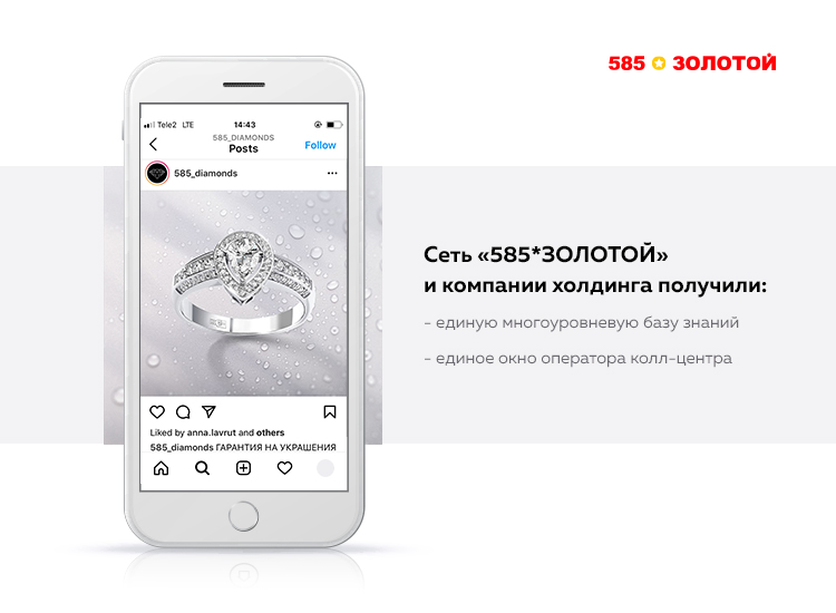 На данный момент сеть «585*ЗОЛОТОЙ» имеет единую многоуровневую базу знаний и единое окно оператора колл-центра, что помогает сотрудникам закрывать входящие обращения с максимальной скоростью.
