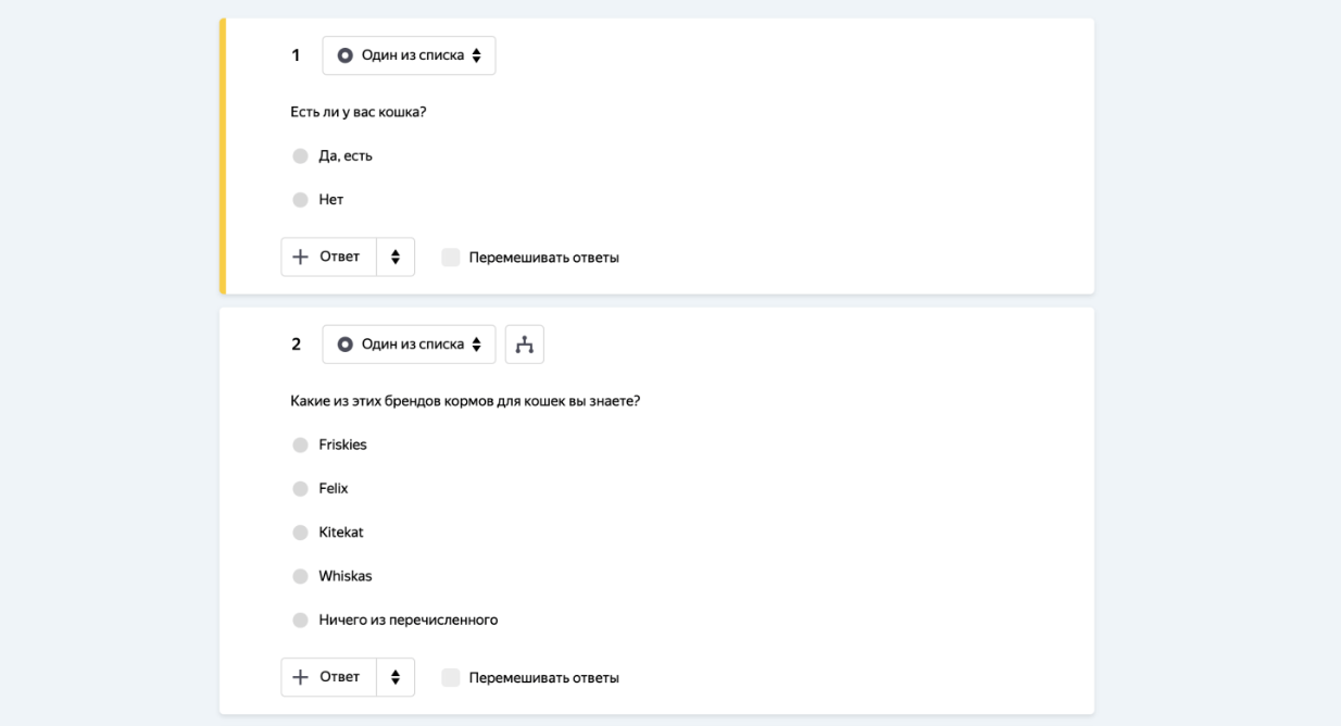 Пример опроса на Яндекс Взгляд от производителя кошачьего корма: