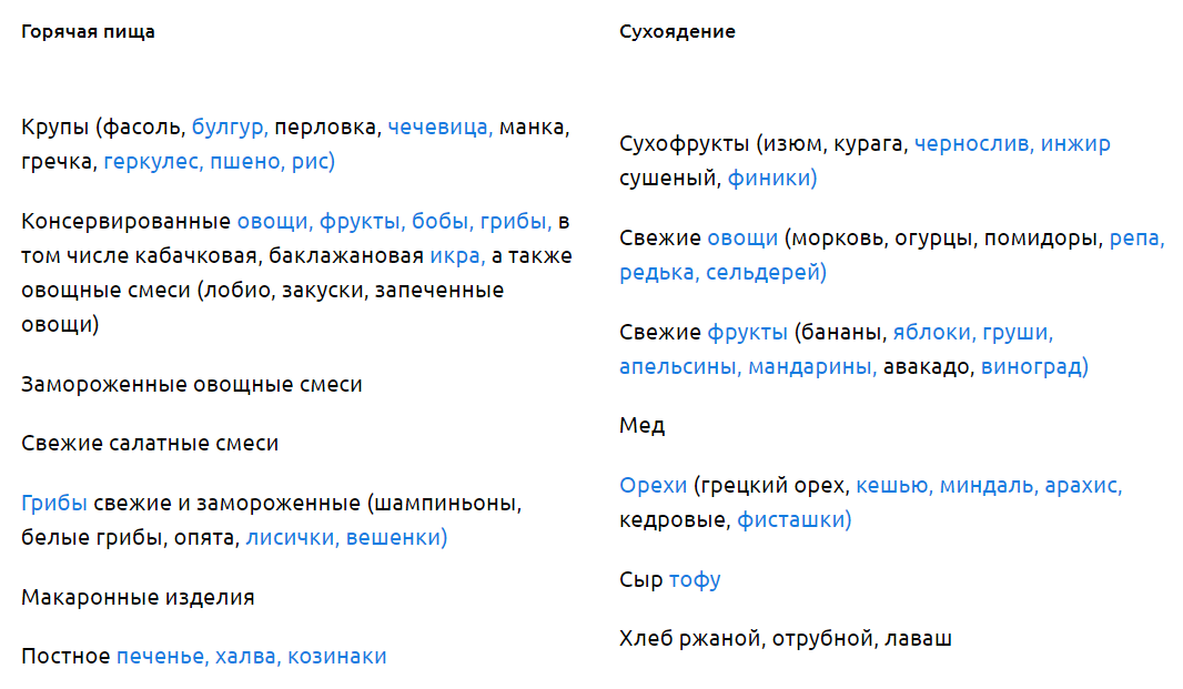 Мы собрали список всех продуктов, которые можно есть во время поста: