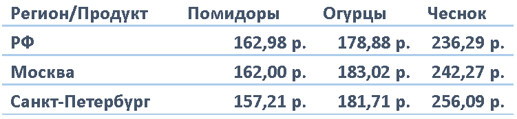 А вот на стоимость чеснока эта ситуация повлияла. Население уверено в целебных и профилактических свойствах овоща, поэтому спрос на него увеличился. В Москве за месяц цена увеличилась на 6,26% с 227,99 руб до 242,27 руб; в Санкт-Петербурге – на 12,93% с 226,76 руб до 256,09 руб; по России в целом – на 11,43% с 212,05 руб до 236,29 руб.