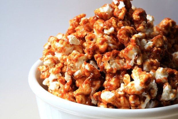 Попкорн в карамели. Как ни странно, но этот снек для просмотра фильма в кинотеатре является традиционным блюдом на Хэллоуин. Однако американцы предпочитают не готовый попкорн, а приготовленный собственными силами. Особенное внимание уделяется карамели: ее готовят вручную с помощью сахара и сгущенного молока.