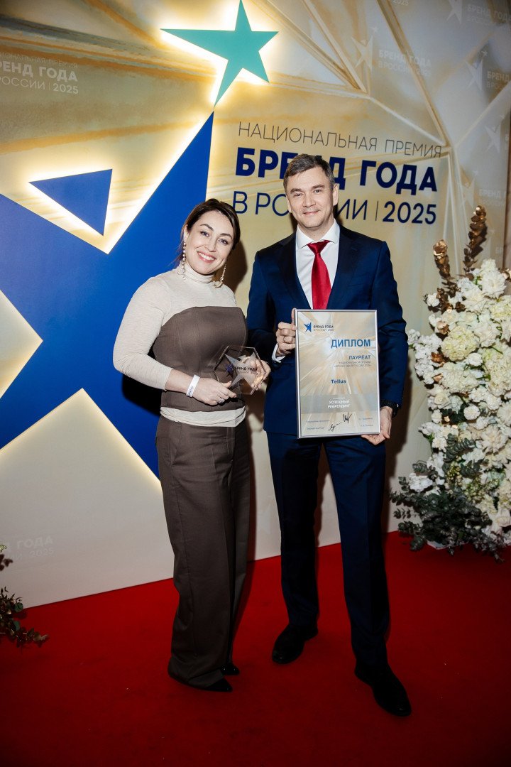 Награду на торжественной церемонии награждения лауреатов национальной премии «Бренд года в России 2025» получили заместитель генерального директора по профессиональному ассортименту Tellus компании ООО «ЭвоКом» Константин Шестаков и руководитель департамента по маркетингу профессионального ассортимента Ирина Лебедева.