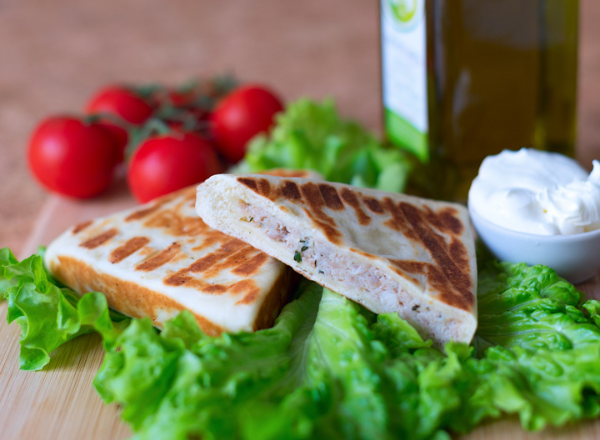 - Грилата с курицей и сыром. Приготовлена на классическом тесте для ценителей курицы с сыром.
