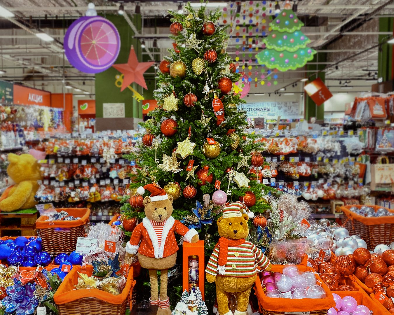 Внимательно подобран и новогодний ассортимент: последние «моды» в елочных игрушках (а ретростиль в моде), декоре и текстиле, аромамагии и, конечно, в выборе подарков на любой вкус. Гипермаркет, конечно, – это не только продукты, это огромное количество непродовольственных товаров с акцентом на качественный подарочный ассортимент.