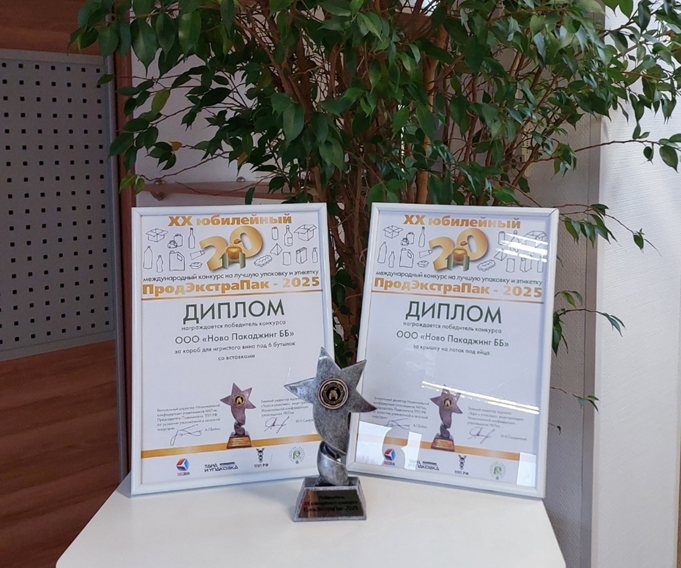 В этом году компания Ново Пакаджинг ББ была удостоена двух наград на 20-м международном конкурсе «ПродЭкстраПак-2025», посвященном лучшим образцам упаковки и этикеток для пищевой продукции и напитков.
