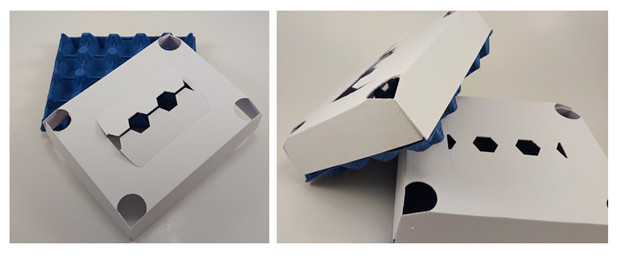 Это решение, запатентованное компанией Ново Пакаджинг ББ, предназначено для автоматической склейки на специализированных линиях. Усиленная конструкция позволяет использовать более экономичный и легкий картон для производства крышек, обеспечивая надежную защиту хрупкого содержимого.