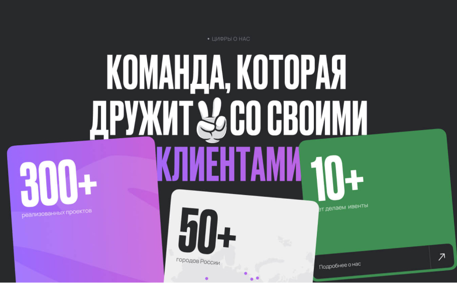 - игровой блок «Что мы делаем» — с помощью мыши можно перемещать, раскидывать или складывать блоки с видами мероприятий. Гейм-элемент помогает пользователю дольше задержаться на странице и заякорить в памяти компанию
