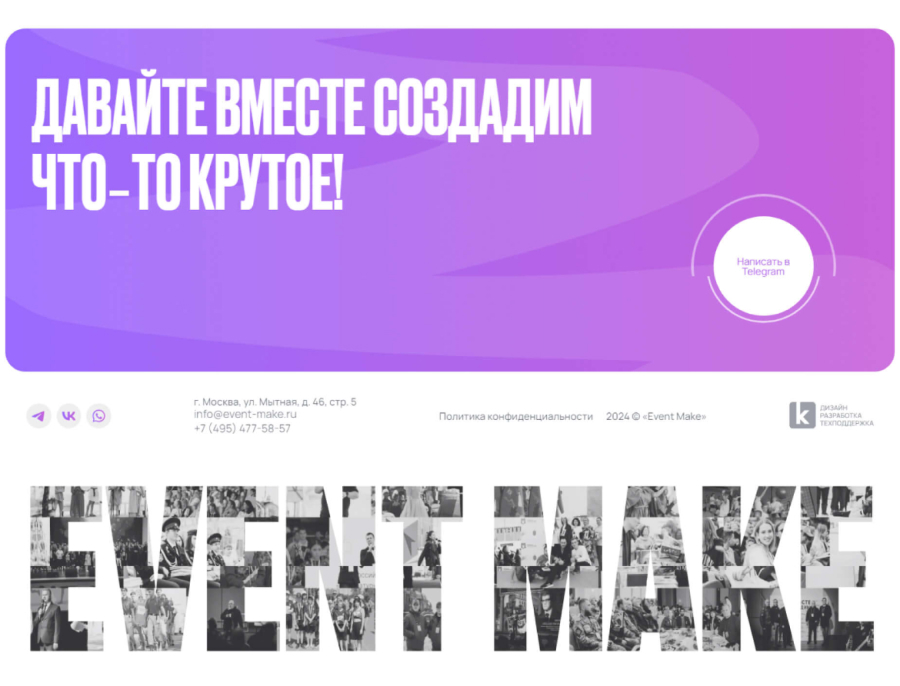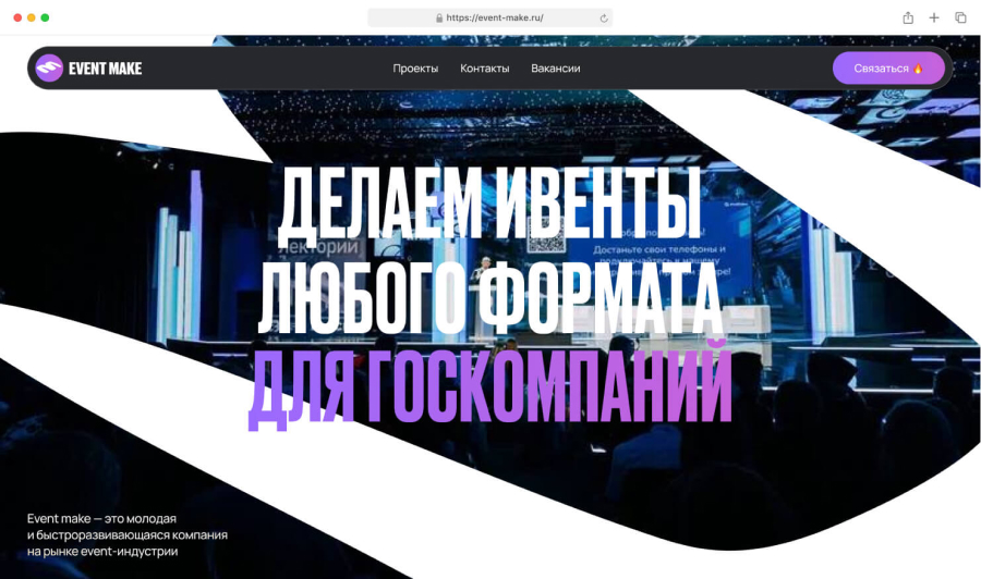 Компания ООО «Корпорация Мейк» — ведущее ивент-агентство на российском рынке, специализирующееся на создании ярких и запоминающихся событий для государственных компаний по всей стране
