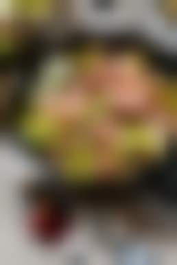 Пельмени с тигровыми креветками в тайском соусе Том Ям;