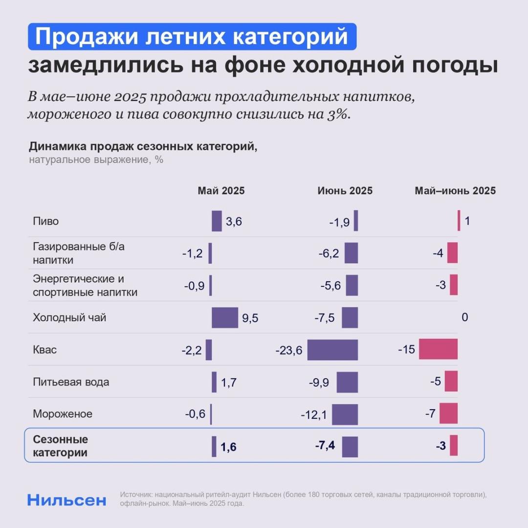 Анализ влияния холодного лета-2025 на ритейл: почему упали продажи мороженого и гриля, как поставщики меняли ассортимент и цены в условиях аномальной погоды.