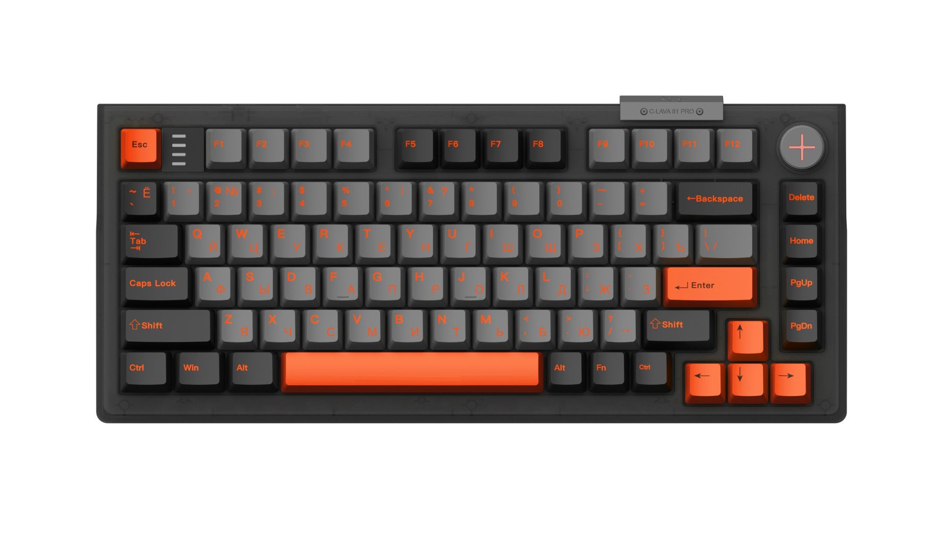 C-Lava 81 Pro построена на магнитных переключателях Raesha и подключается по проводу через USB Type-C. В клавиатуре 81 клавиша с полным anti-ghosting (одновременное распознавание всех нажатий), настраиваемая RGB-подсветка и многофункциональный регулятор (knob) для управления громкостью и подсветкой. Клавиатура выполнена в конструкции Top Mount для снижения вибраций, на борту — PBT-кейкапы двойного литья, русская и английская версии с подсветкой, а также совместимость с Windows, macOS и Linux.