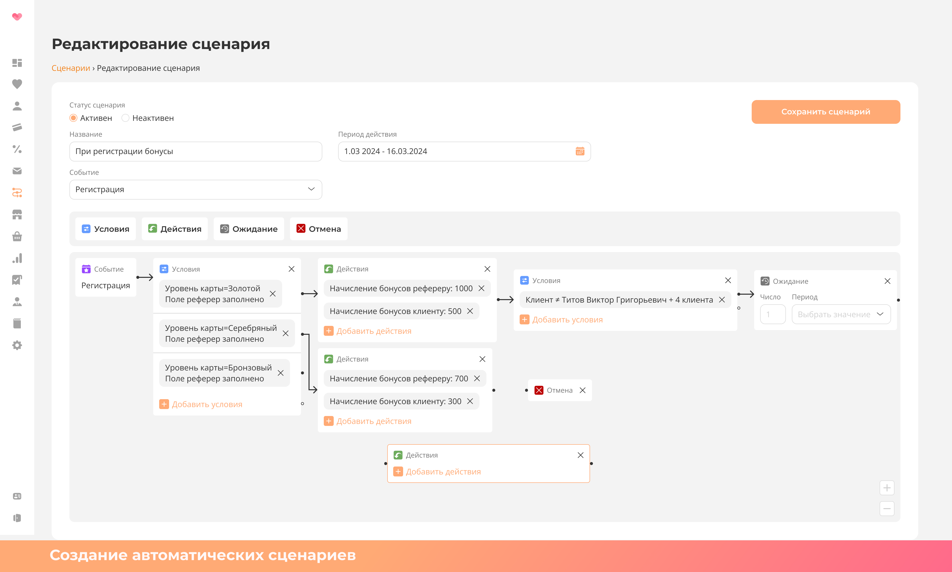 Стало больше подсистем, которые маркетологи могут настраивать сами. Например, без помощи программистов и написания кода можно брендировать электронные карты, мобильное приложение и личный кабинет клиентов. Расширенные функции сценариев помогают автоматизировать работу с брошенными корзинами, геймификацией, оттоком и привлечением клиентов.