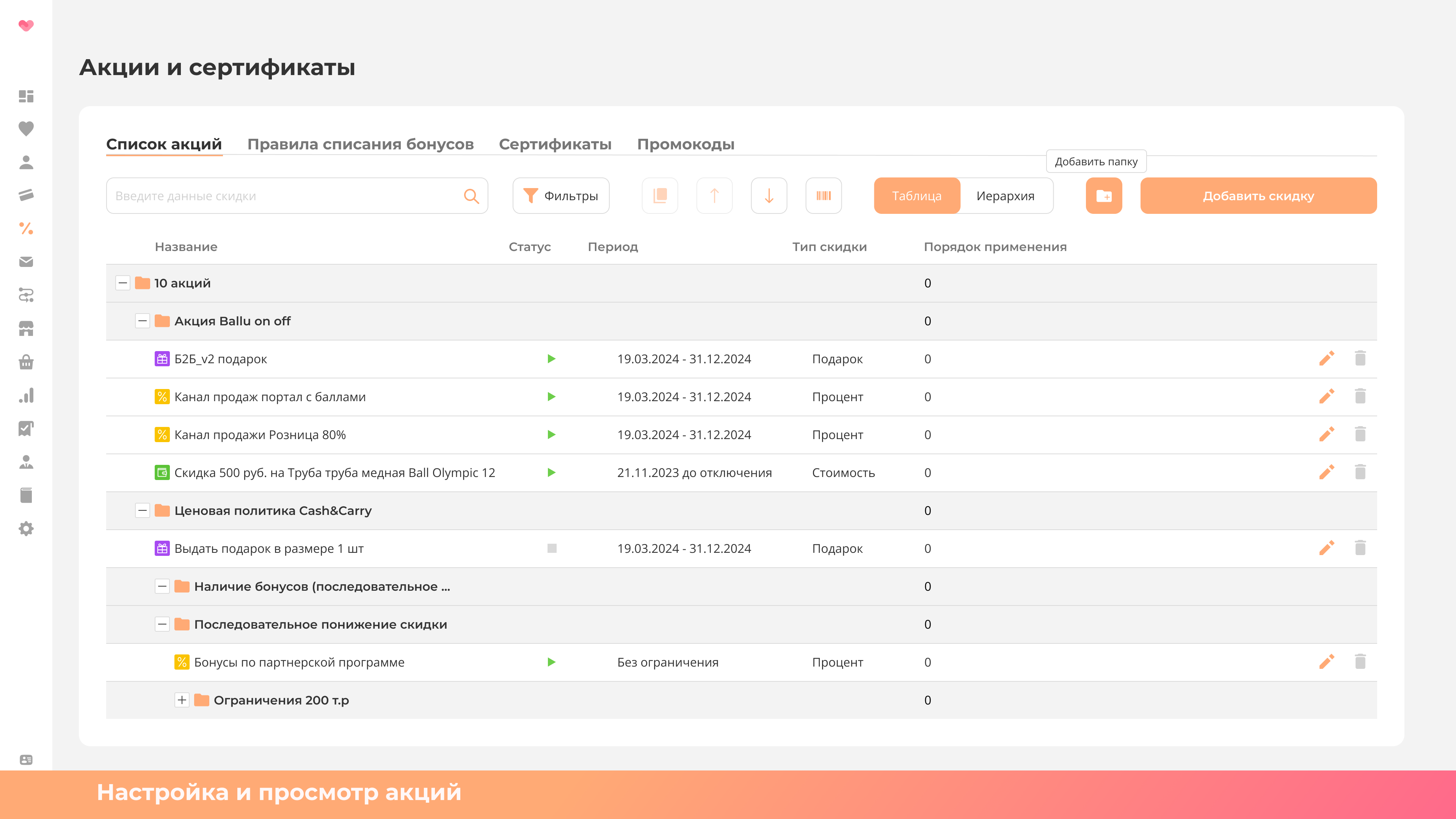 Новый удобный интерфейс можно посмотреть на скринах ниже. Или оцените возможности платформы «1С-Рарус: Система управления лояльностью» сразу в деле: получите демодоступ ко всем инструментам на сайте.