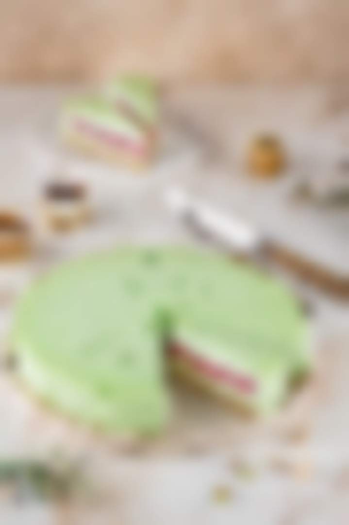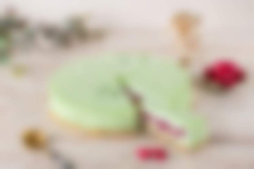 Сочетаем сливочный сыр с обжаренными фисташками и свежей малиной в новом чизкейке.