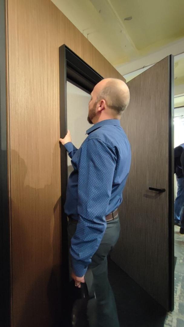Бренд представил свои новинки и бестселлеры. Гардеробная система, интеграция теневых плинтусов с дверью на скрытом коробе и стеновыми панелями пользовались особым вниманием у посетителей выставки.