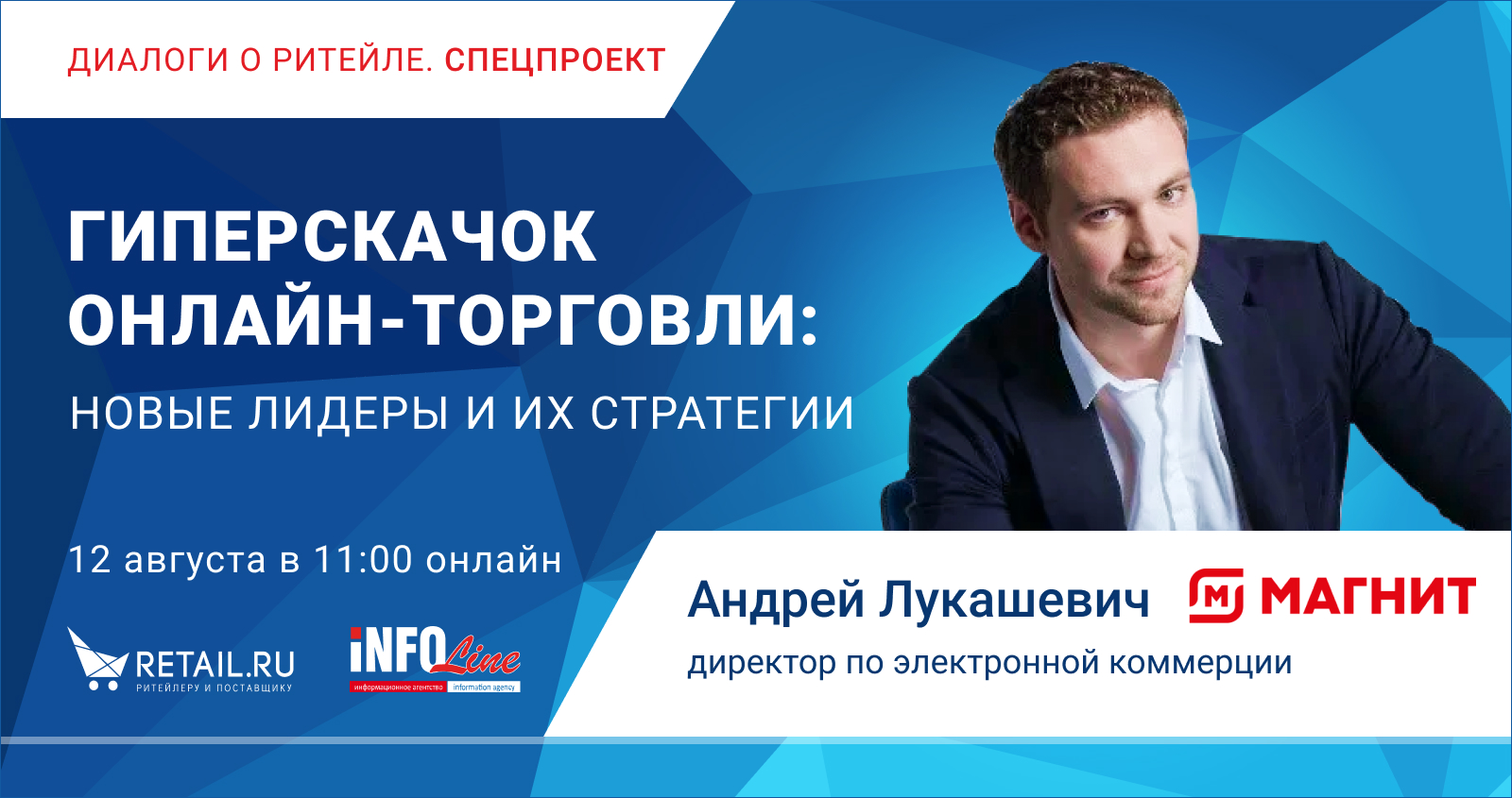 Андрей Лукашевич, член правления и директор по электронной коммерции сети «Магнит» в ходе эфира «Гиперскачок онлайн-торговли: новые лидеры и их стратегии» ответит на вопросы об онлайн-стратегии титана российского FMCG-ритейла.