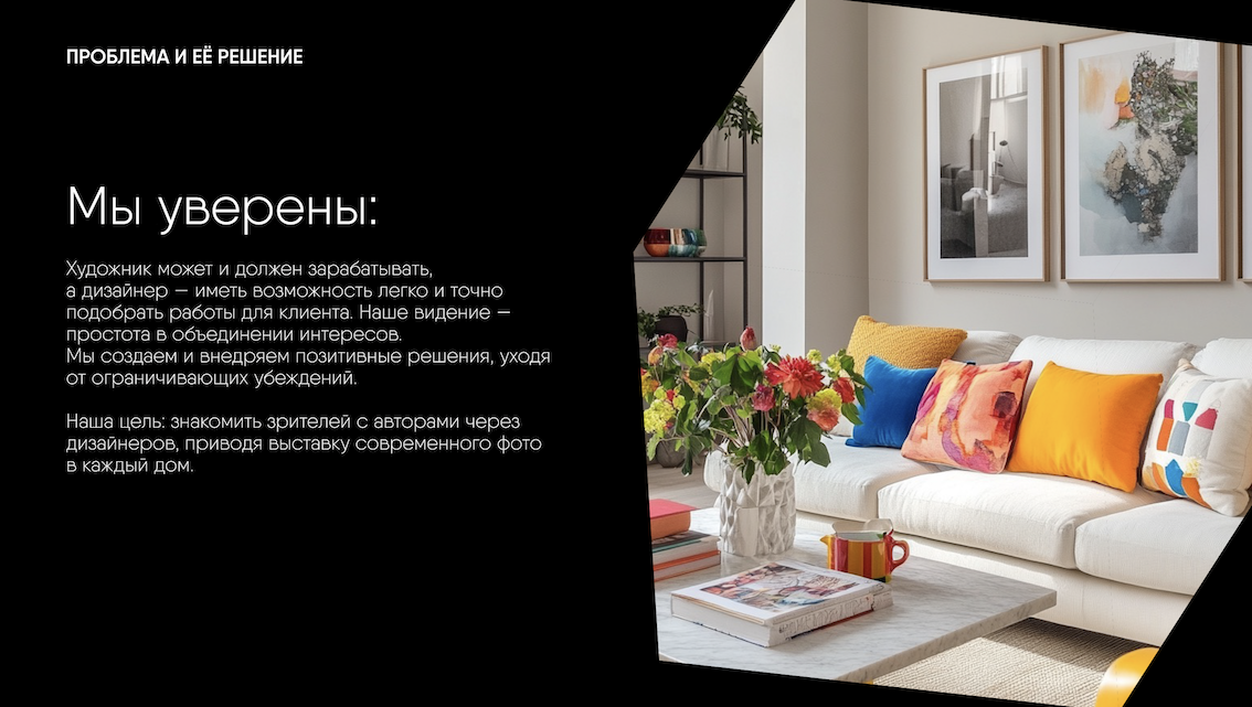 Формат опен-коллов, привычный для авторов, поможет организовать процесс отбора эффективно и комфортно. Таким образом, соединяя практики арт-среды и ритейла, платформа сформирует гибкое решение, отражающее современную динамику.