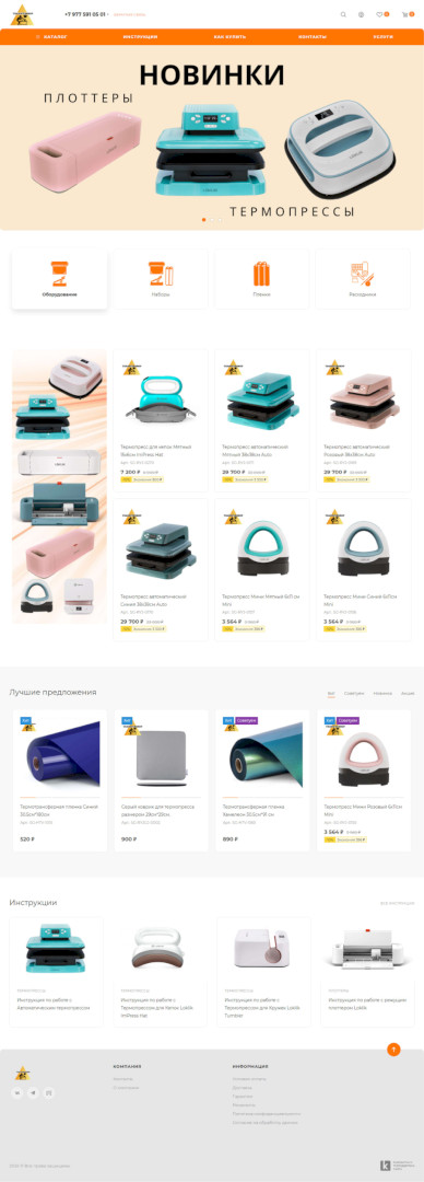 - Разработан сайт, как дополнительный источник продаж термопрессов и плоттеров, а также аксессуаров для творчества