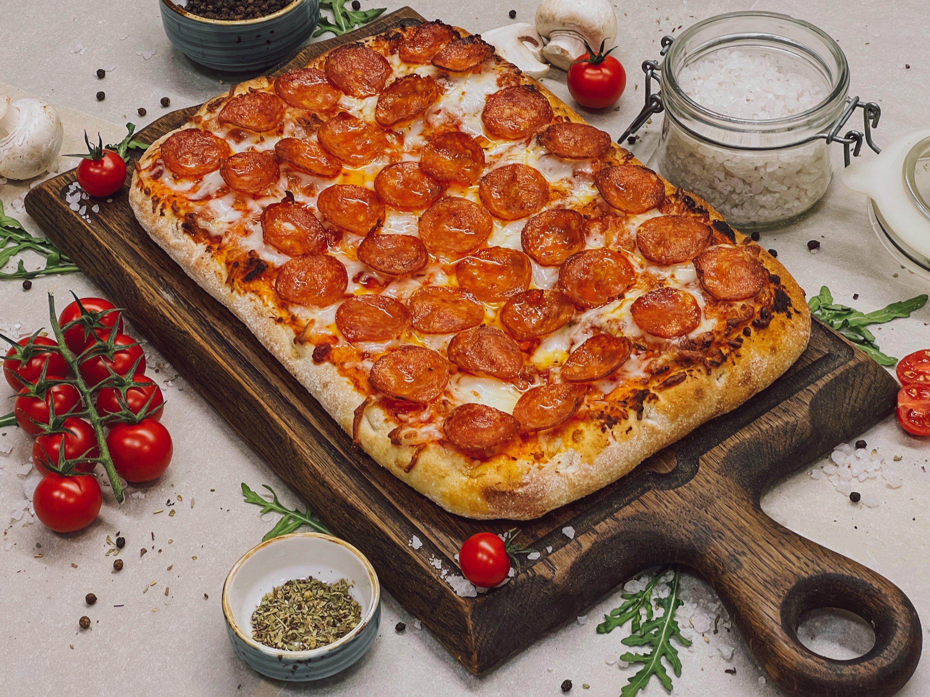 Приготовление теста для римской пиццы – ручная и довольно трудоемкая работа, которая требует специальной квалификации персонала. Воздушное тесто для парбейков требует соблюдения особого температурного режима и технологии, которые полностью обеспечивает производственный цех «ФудФабрики». Разнообразие начинок для готовых пицц позволит значительно расширить ассортимент вашего кафе или бара.