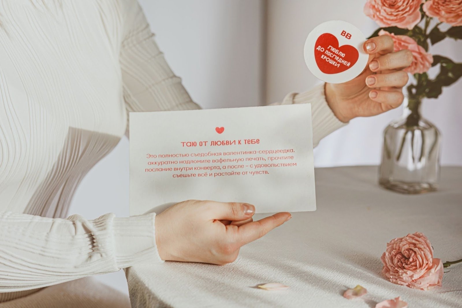 Для тех, кто искал по-настоящему редкий формат, «ВкусВилл» подготовил съедобные валентинки. Особенность продукта заключалась в технологии производства: валентинка выполнена из вафельной бумаги. Это крайне капризный и хрупкий материал.