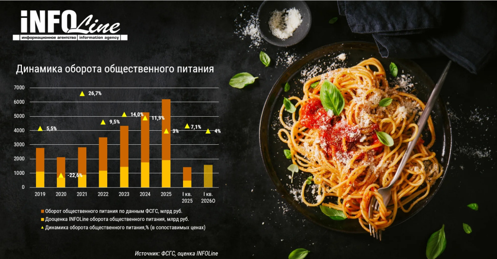 Специалисты INFOLine выпустили краткий обзор рынка общественного питания в России. В нем — самое важное о состоянии отрасли, изменениях в регулировании, сделках, открытиях, закрытиях и стратегиях крупнейших сетей за март и апрель 2026 года.