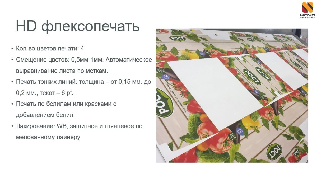Компания Ново Пакаджинг ББ организовала вебинар "Печать на упаковке: ожидания и реальность", посвященный особенностям флексографической и офсетной печати, специальным технологиям и ключевым факторам создания качественной упаковки. Флексографическая печать популярна благодаря своей экономичности и разнообразию методов (HD print, Fine print, Standard print), отличающихся размером растровых точек.