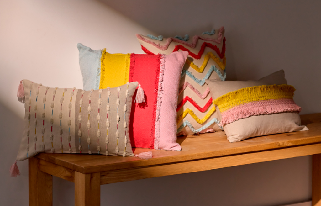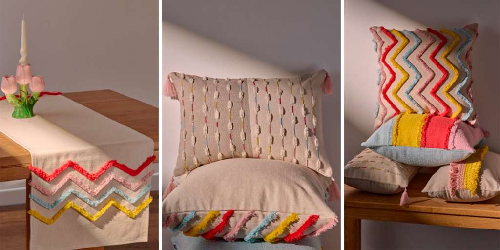 Текстильная часть коллекции Blossom — дополнение к посуде и аксессуарам. В нее вошли декоративные подушки столовый текстиль c бахромой и объемным декором.