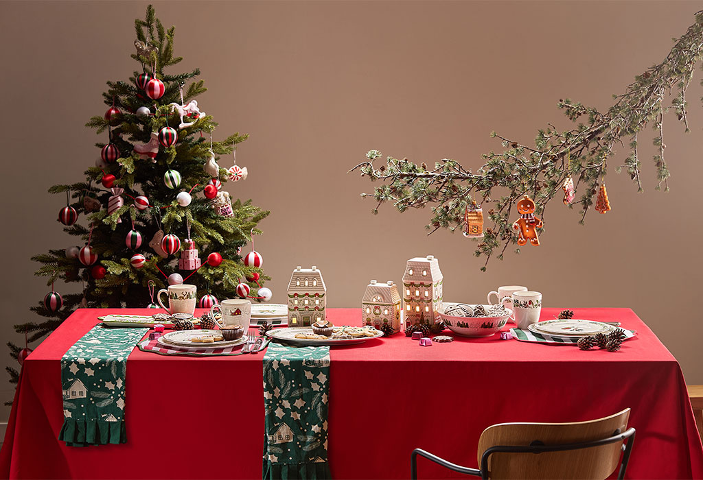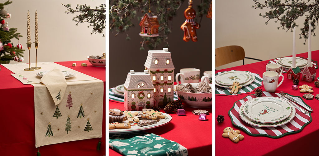 Заметную часть коллекции заняли предметы сервировки — посуда и столовый текстиль с традиционными зимними мотивами для главного праздничного ужина в новогоднюю ночь.