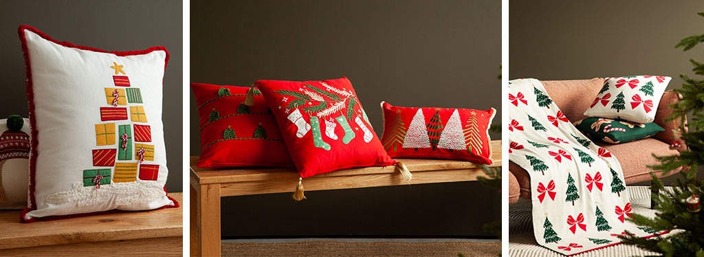 Пледы и декоративные чехлы на подушки — это простой и быстрый способ создать дома новогоднюю атмосферу. Компания ежегодно обновляла принты для домашнего текстиля: в этот раз за праздничное настроение отвечали заснеженные домики, вязаные шапочки, пряничные человечки и, конечно, традиционные елки. Такой текстиль практичен: чехлы и пледы займут минимум места при хранении.