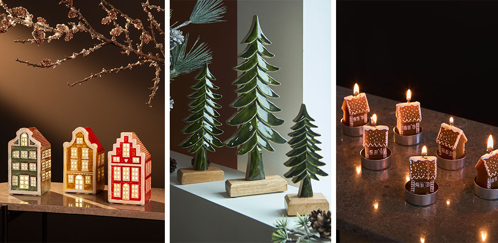 В этой категории представлены новогодние свечи, фигурки, подсвечники и другие элементы декора, которые наполнят дом предвкушением праздника. И конечно же, бренд повторил новогодние бестселлеры — фарфоровые подсвечники-домики с окошками, которые будут светиться, когда внутри горит свеча-таблетка.