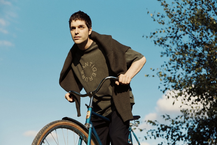 Для него в капсулу вошли базовые футболки из премиум-хлопка supima и футболки из 100% хлопка в стиле гранж с брендингом, комфортные хлопковые рубашки, деним, а также теплые вязаные джемперы (48% премиальной шерсти в составе). Из верхней одежды: двубортное пальто из премиальной шерсти (70% шерсти в составе ткани), технологичная куртка с капюшоном из водонепроницаемого софтшелла на мембране с необычной «фишкой» – проявляющимся от попадания на ткань воды принтом «URBANTIGER», а также утепленная парка из переработанных океанических бутылок.