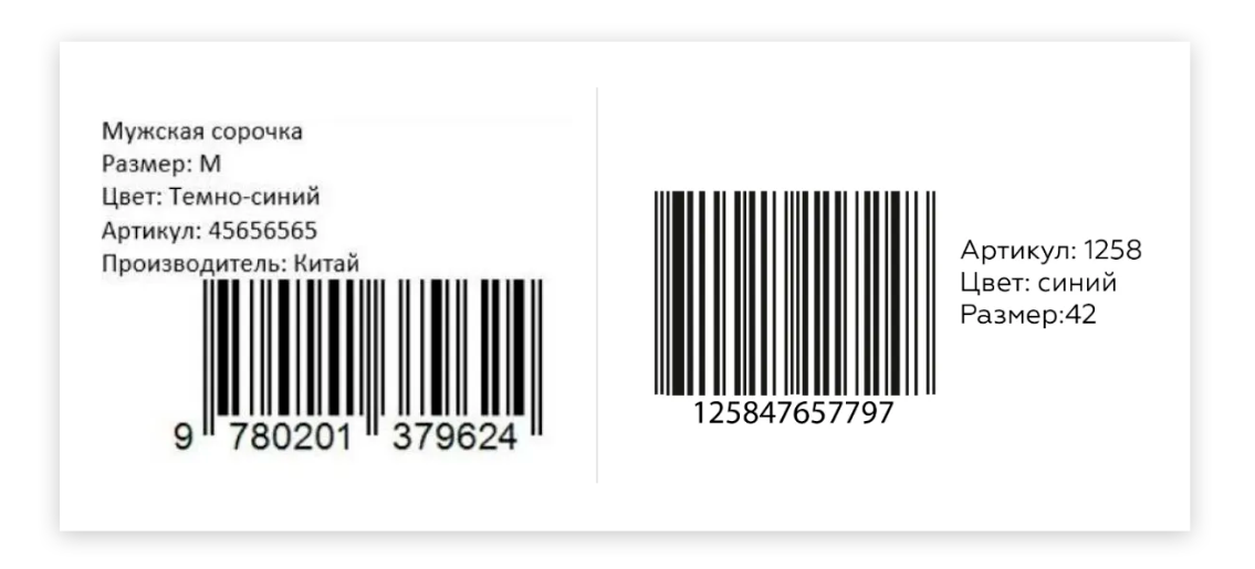На товаре уже может быть баркод от производителя. В этом случае печатать этикетку с ним не нужно, достаточно добавить символы со стикера в карточку товара.
